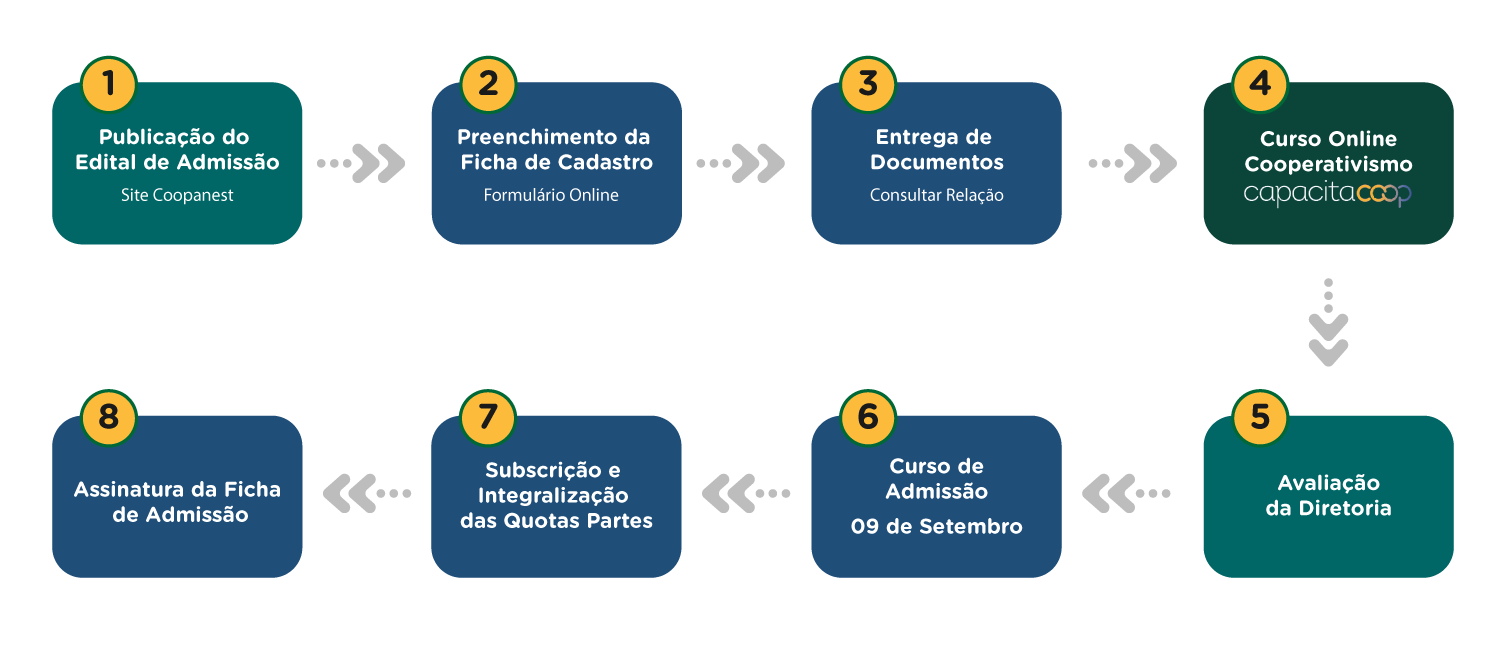 Conforme disposto no parágrafo 2º do Artigo 8º, “O candidato participará obrigatoriamente do Curso de Admissão de Cooperados com duração, de, no mínimo, 16 (dezesseis) horas.”